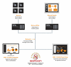 • In a power plant, SCADA monitors voltage and energy distribution
